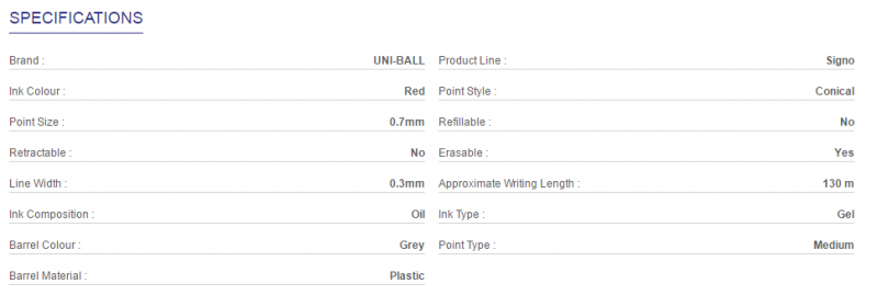 UNIBALL SIGNO UMN 307 RED GEL INK BALL PEN 0.7MM